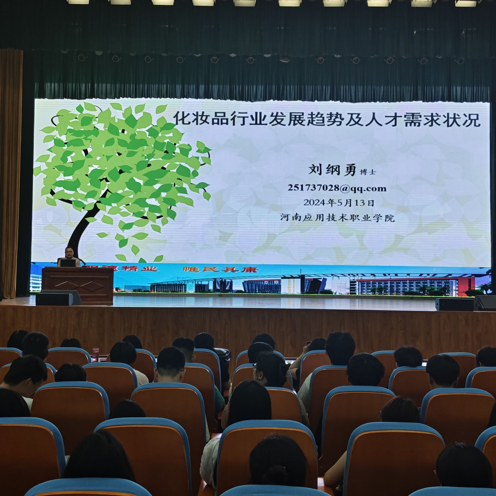 报告中,刘纲勇从化妆品行业现状、前景和存在问题,化妆品行业高等教育发展和就业岗位分析等方面做了详细介绍,给同学们提出了宝贵的学习意见。