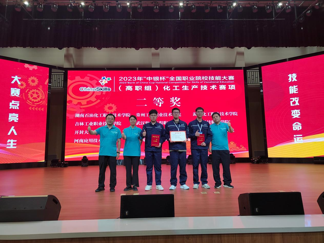 8月22日,2023年全国职业院校技能大赛(高职组)“化工生产技术”赛项在甘肃省兰州石化职业技术大学落下帷幕,我院2021级学生关路鹤、张腾宇、方振宇,在54支队伍中脱颖而出,荣获国赛二等奖。