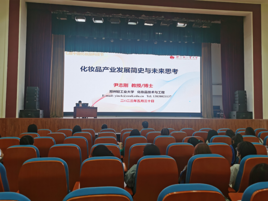 为推动学习贯彻习近平新时代中国特色社会主义思想主题教育走深、走实,化学工程学院党政围绕中心工作,把就业优先战略落到实处,推进就业指导工作,帮助在校生了解行业形势、增强择业意识,实现更加充分、更高质量就业。5月30日下午,郑州轻工业大学尹志刚教授应邀在我校活动中心开展了“化妆品产业发展简史与未来思考”的专题讲座,讲座由化妆品教研室舒航老师主持,化学工程学院师生近400人参加此次讲座。