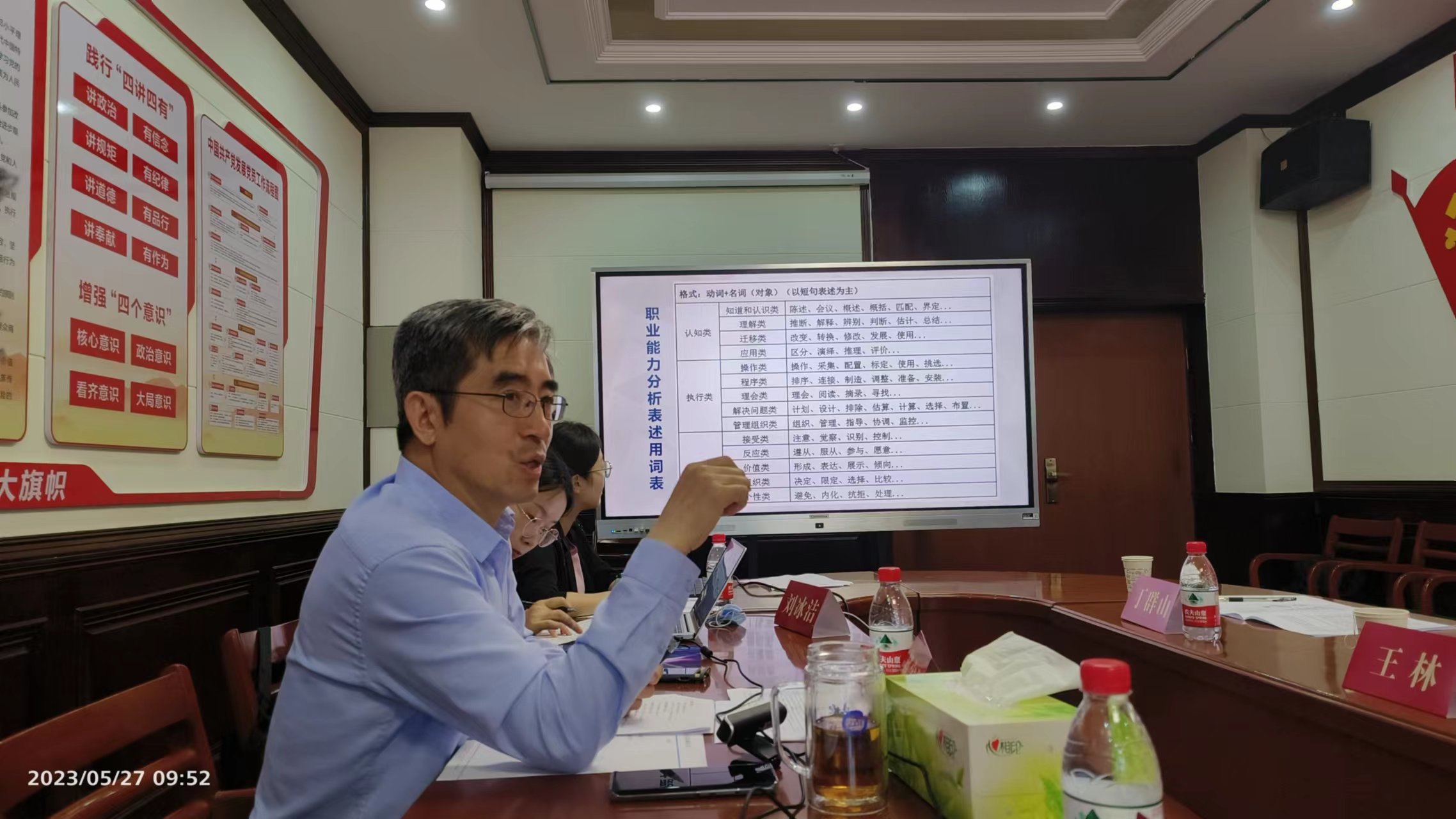 会议期间,郝洪强为与会人员针对化工领域的学科发展及人才培养等问题,就如何进行职业能力分析辅导,详细介绍了职业能力分析的方法和步骤。他采用“二维四步五解”职业能力分析法,引导在场的专业教师按照岗位发展路径,就工作项目、任务和所需的专业能力进行讨论。随后,大家结合学科专业的教学方法、实践教学模式、课程设置、教材选用等问题展开了深入探讨。