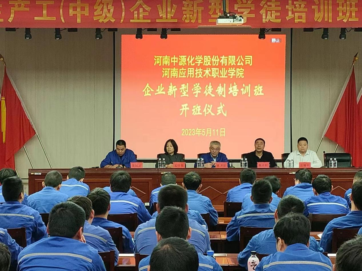 2023年5月11日,由南阳市桐柏县人社局主导,化学工程学院承办的中源化学“新型学徒制”培训开班仪式在南阳举行。博源集团副总经理郭开宏、我校继续教育学院院长孟付荣、本科部主任蔡庄红、化学工程学院副院长岳瑞丰以及160余名学员参加了开班仪式,开班仪式由博源集团副总经理黄国祥主持。