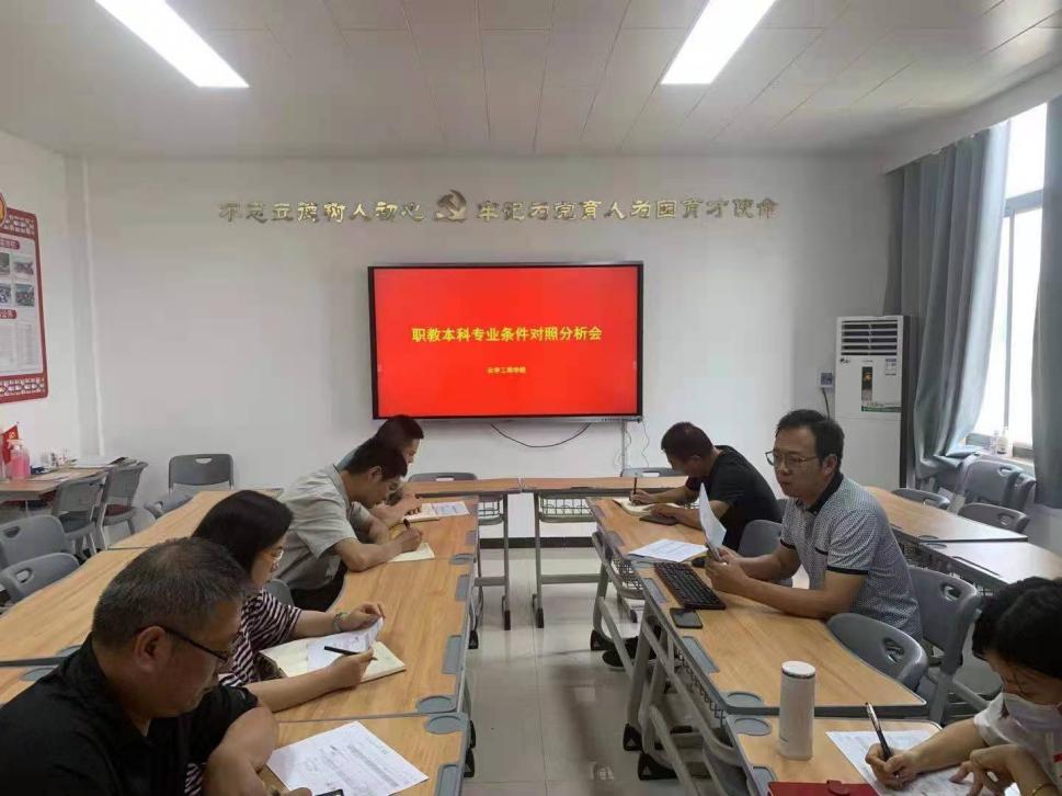 为了推进职业教育本科专业申报筹备工作,化学工程学院于2022年6月7日召开了职教本科专业条件对照分析会。学院党总支书记蔡庄红、教学办主任岳瑞丰以及各教研室主任参加了此次会议,会议由院长朱冰主持。