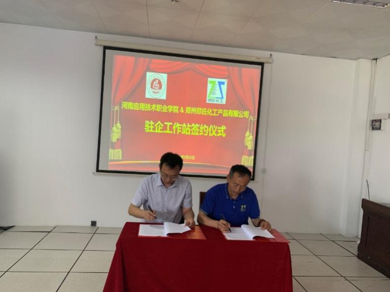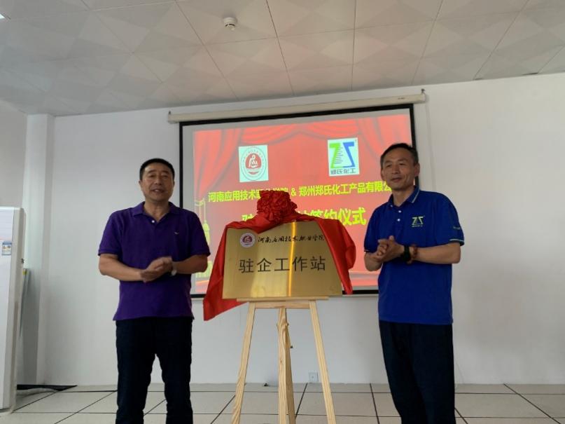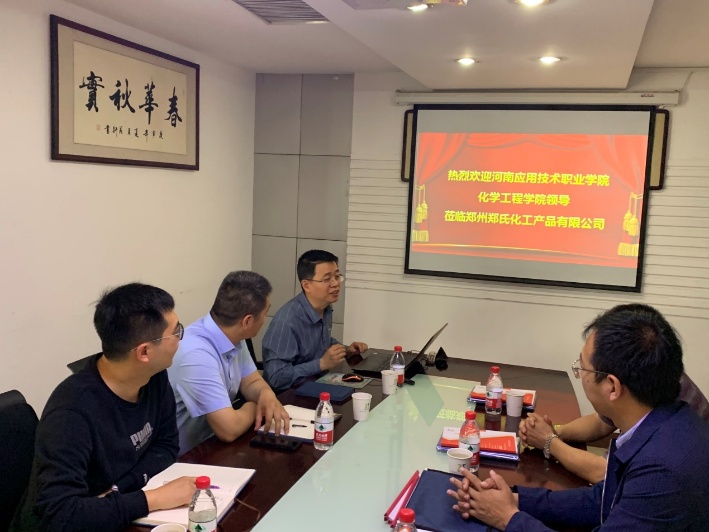 5月22日,我校化学工程学院朱冰院长、蔡庄红书记等一行四人赶赴郑州郑氏化工产品有限公司举行校企合作签约暨“驻企工作站”揭牌仪式。