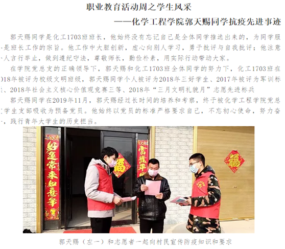 为了响应教育部等十部门和河南省教育厅关于做好“2020年职业教育活动周”相关工作的要求,落实学校职业教育周活动部署,结合化学工程学院工作实际情况的职业教育活动周已于2020年11月8日正式拉开帷幕。