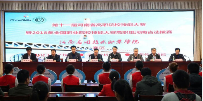 2018年3月30日上午,第十一届河南省高职院校技能大赛暨2018年全国职业院校技能大赛高职组河南省选拔赛化工生产技术、工业分析检验、中药技能赛项在我校成功举办,这也是我校连续第六次承办全国职业院校技能大赛河南选拔赛化工类赛项。共有来自黄河水利职业技术学院、郑州铁路职业技术学院、南阳医学高等专科学校、河南建筑职业技术学院等省内22所高职院校的30支代表队参赛。其中化工生产技术、工业分析检验两个赛项由我院承办。