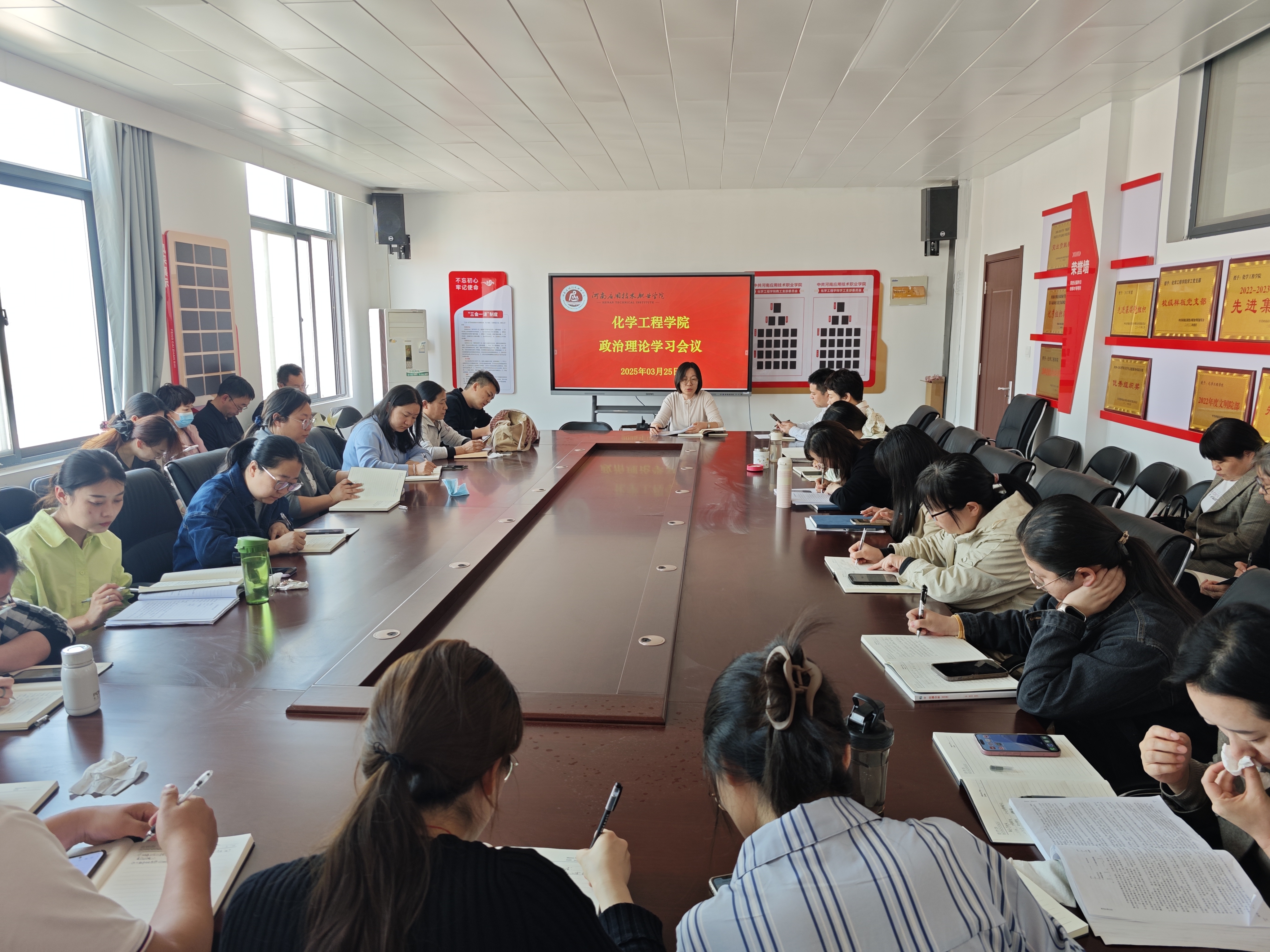 3 月 25 日下午 14:00,化学工程学院在 A512 会议室召开全体教师政治学习会议,旨在深入学习重要思想,提升教师的政治素养和理论水平。