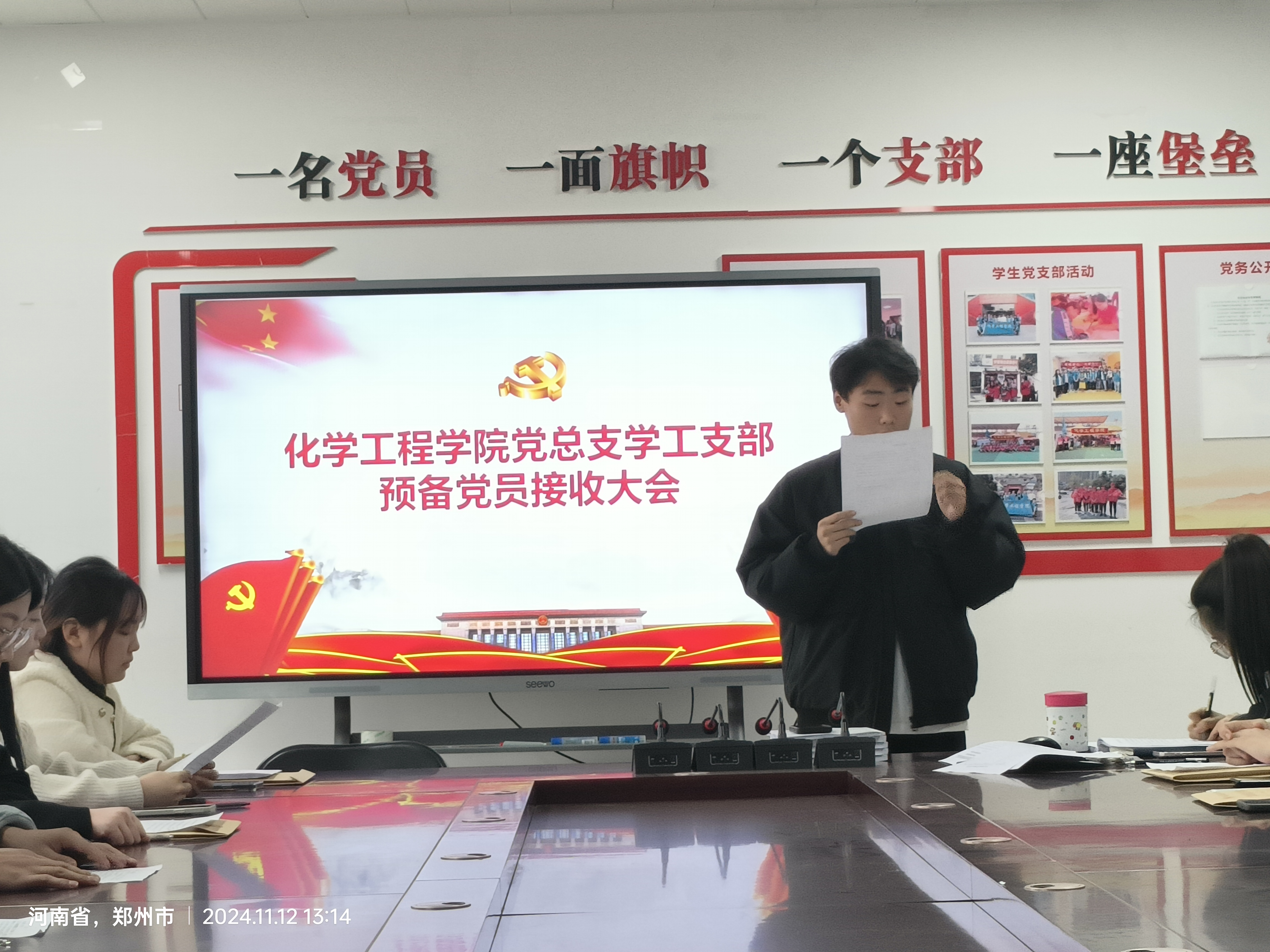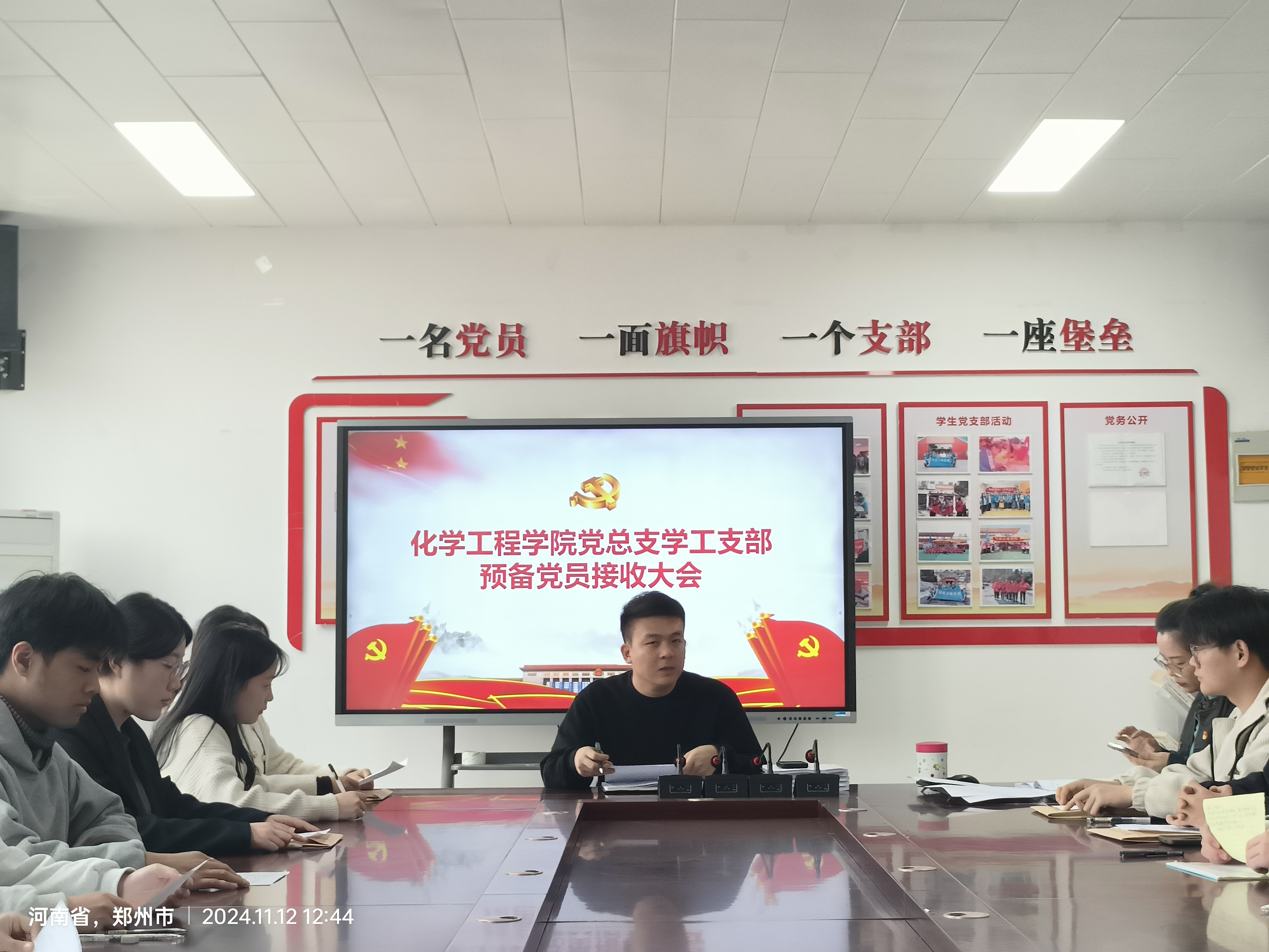 为进一步加强和推进党员队伍建设,切实提高党员发展质量,保持党员队伍先进性和纯洁性。2024年11月12日,化学工程学院党总支学工支部于A512党员活动室召开预备党员接收大会,学工支部全体党员参会,会议由学工支部组织委员何璐红主持。