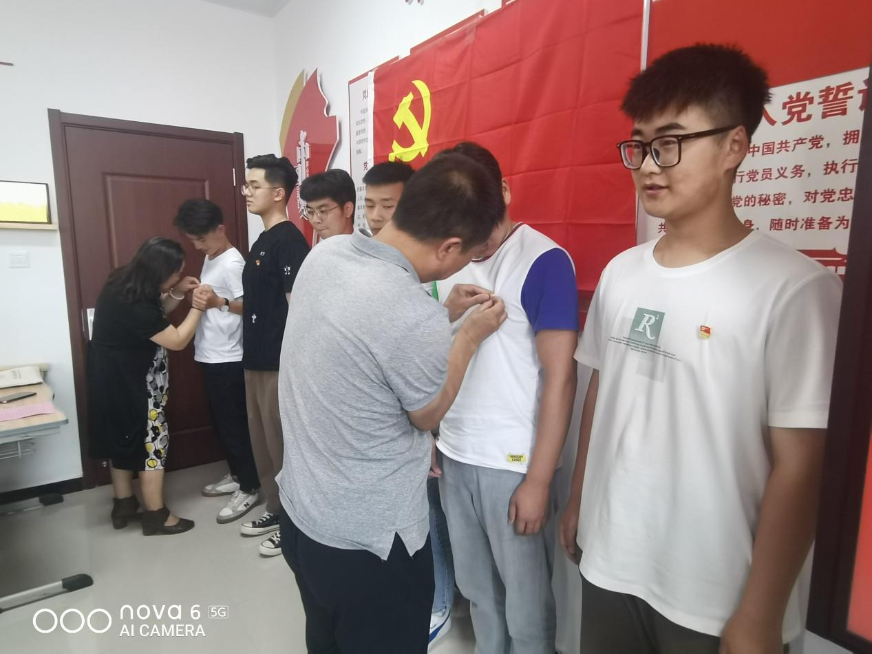 宣誓仪式在激昂慷慨的《国际歌》声中拉开序幕,化学工程学院院长朱冰领誓,新党员面对党旗举起右拳,庄严宣誓,老党员在党旗下重温入党誓词,自觉接受党性教育,用铮铮誓言表达对党的初心和忠诚。随后,老党员分别为新党员佩戴了党员徽章,任龙飞、刘海龙分别代表新老党员发言。
