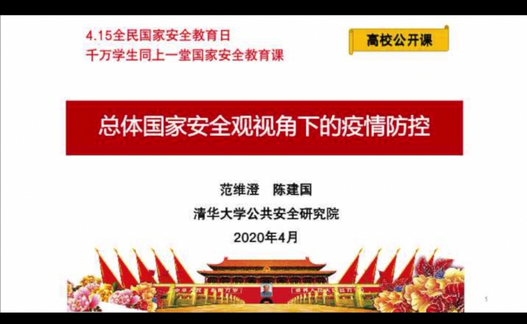本次视频公开课由清华大学范维澄教授主讲。范教授重点讲解了维护生物安全和公共卫生安全的重要意义,以及公民在应对突发公共卫生事件时应承担的职责和义务。