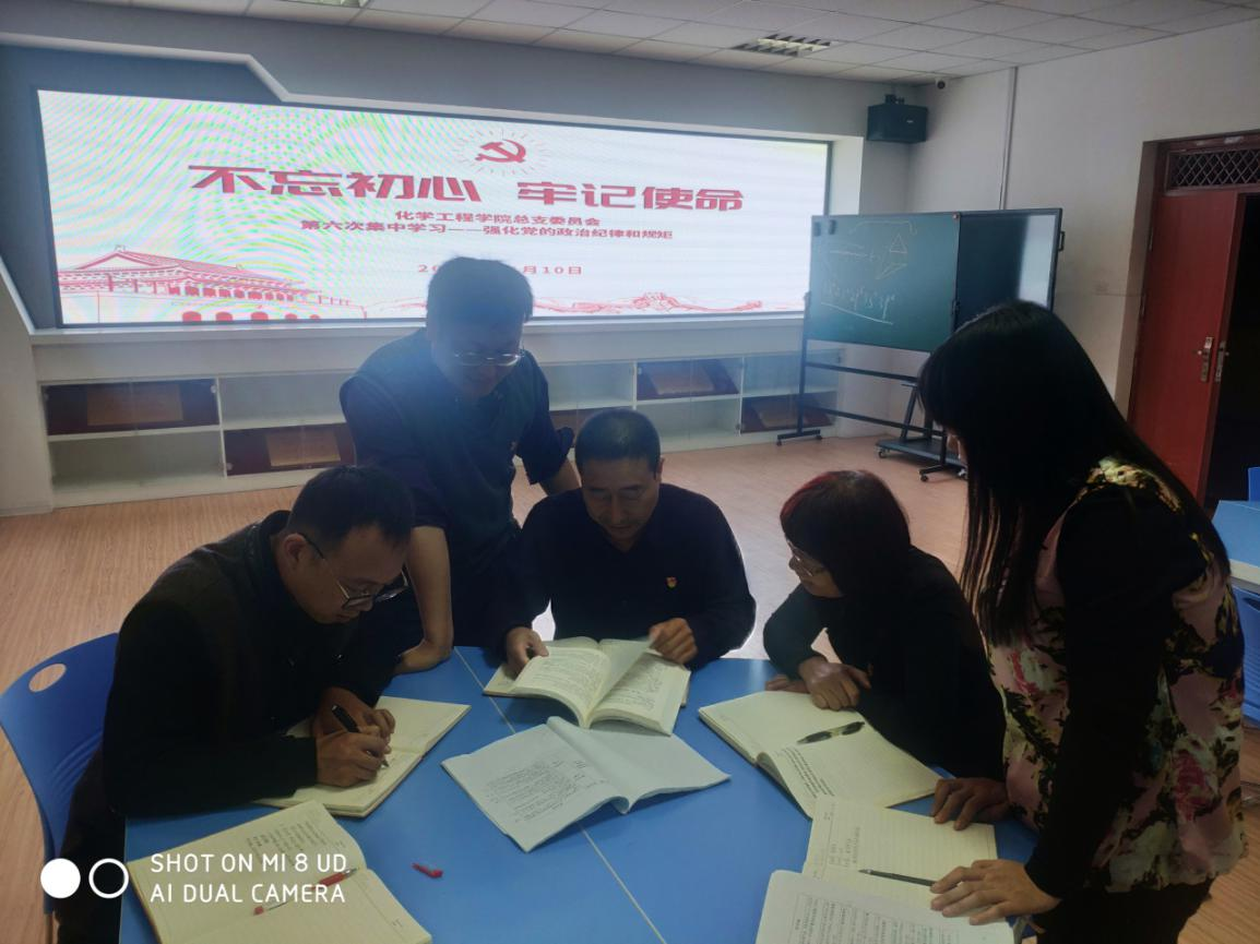 2019年11月10日下午,化学工程学院党总支部委员会组织召开了“不忘初心、牢记使命”第六次集中学习会议。会议由总支书记蔡庄红主持。