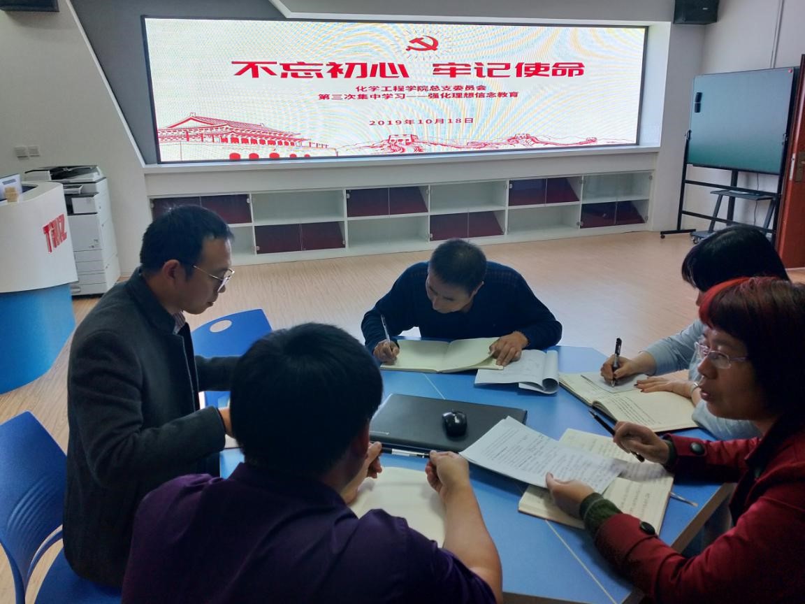 2019年10月18日下午,化学工程学院党总支委员会组织召开了“不忘初心、牢记使命”第三次集中学习会议。会议由总支书记蔡庄红主持。