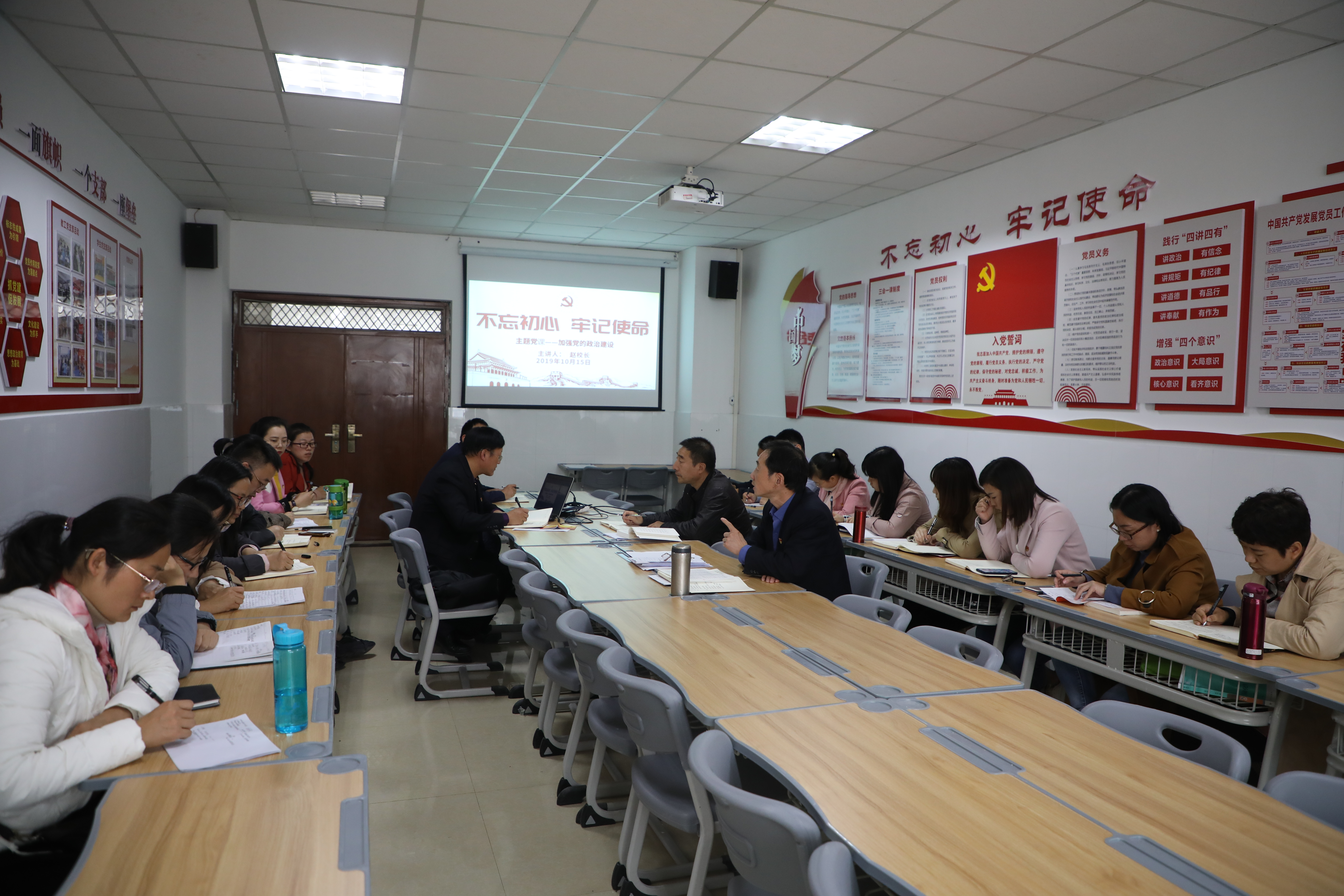 2019年10月16日,校党委委员、副校长赵玉奇同志到我院为全体党员讲党课,主题为——不忘初心、牢记使命、加强党的政治建设。