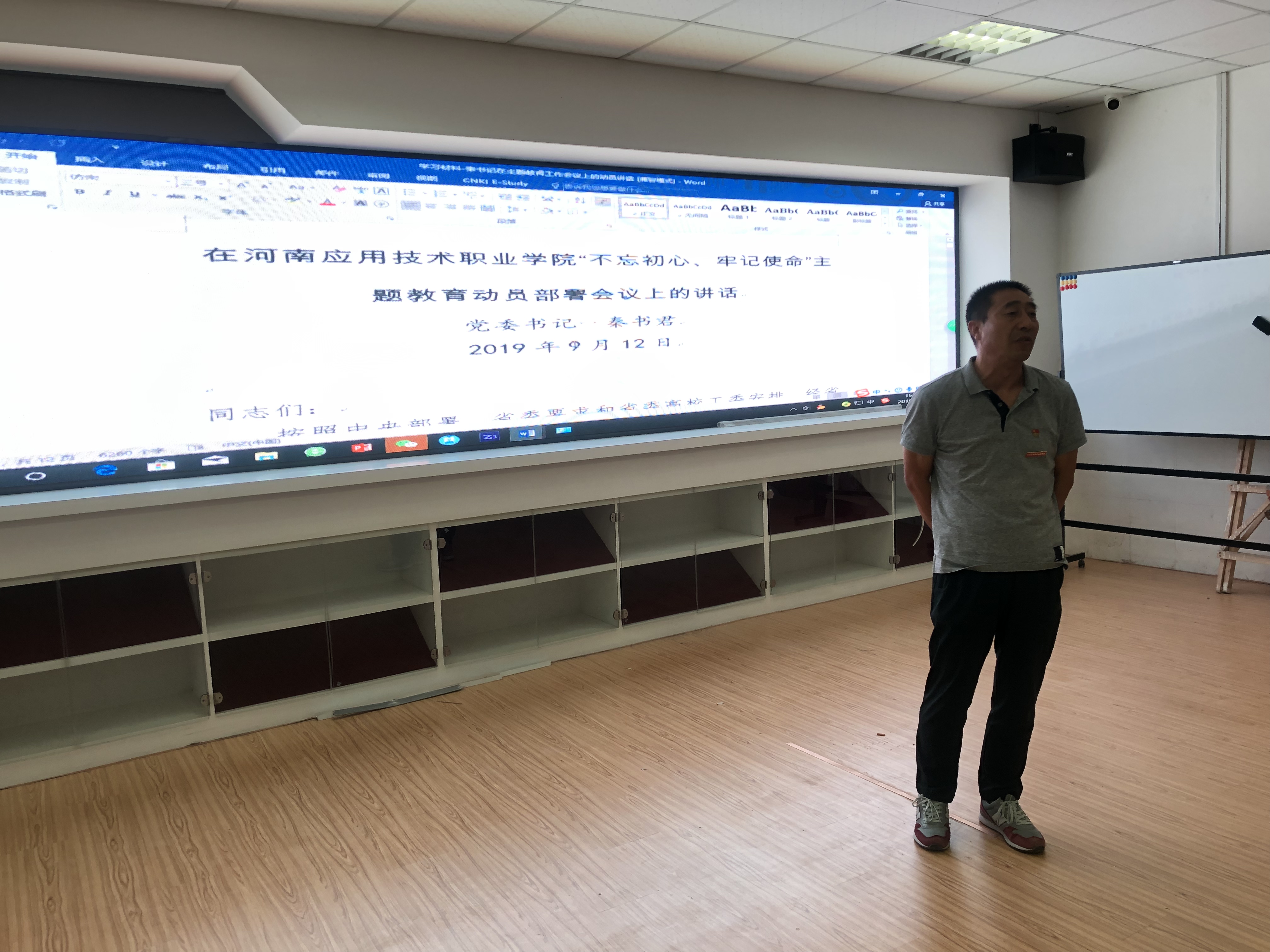 2019年9月17日,化学工程学院党总支组织教工、学生支部在实训楼创意馆召开“不忘初心、牢记使命”主题教育工作动员会。会议中,两个支部按照总支动员工作要求,分别按照学习文件、学习讲话精神和活动动员三个步骤开展。会上,支部书记领学了《习近平在“不忘初心、牢记使命”主题教育工作会议上的讲话》、《永利集团“不忘初心、牢记使命”主题教育工作实施方案》、校党委书记秦书君同志《在永利集团“不忘初心、牢记使命”主题教育动员部署会议上的讲话》,阐述了全党加强“不忘初心、牢记使命”主题教育的重要意义。最后通过对文件的分析,明确了党员干部在教育工作中要实现的目标,将全体党员思想统一到“守初心、担使命,找差距、抓落实”的总要求上来。