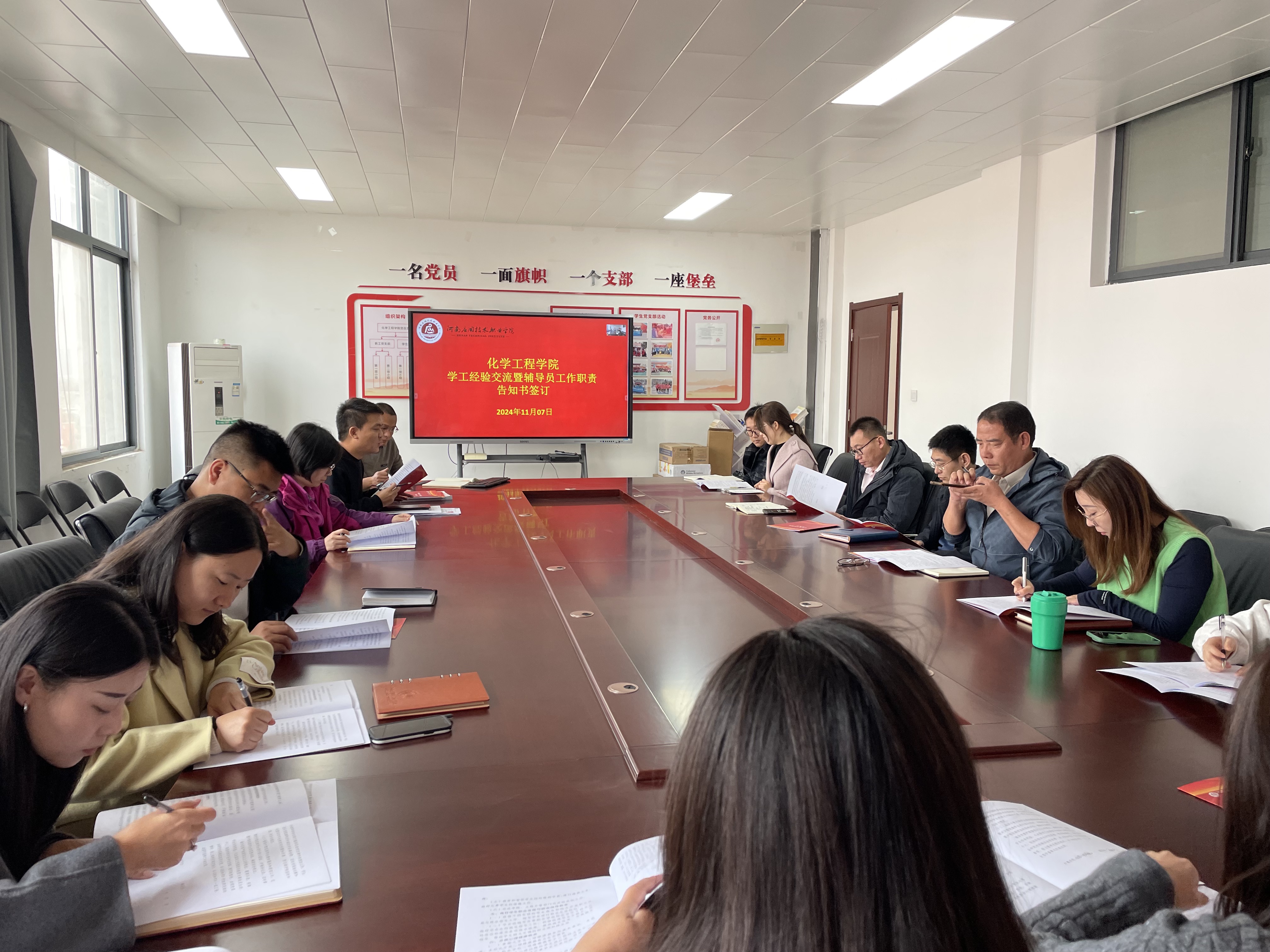 为了进一步提高辅导员的管理工作水平,加强辅导员之间的交流学习,同时明确工作职责,夯实辅导员队伍建设,学院在2024年11月7日在A512召开学工经验交流暨辅导员工作职责告知书签订会议。本次会议围绕学籍管理工作,资助工作、心理健康工作等主题展开,学院党总支书记陈永惠、党总支副书记常惟诚、以及全体专兼职辅导员参加会议,会议由常惟诚主持。