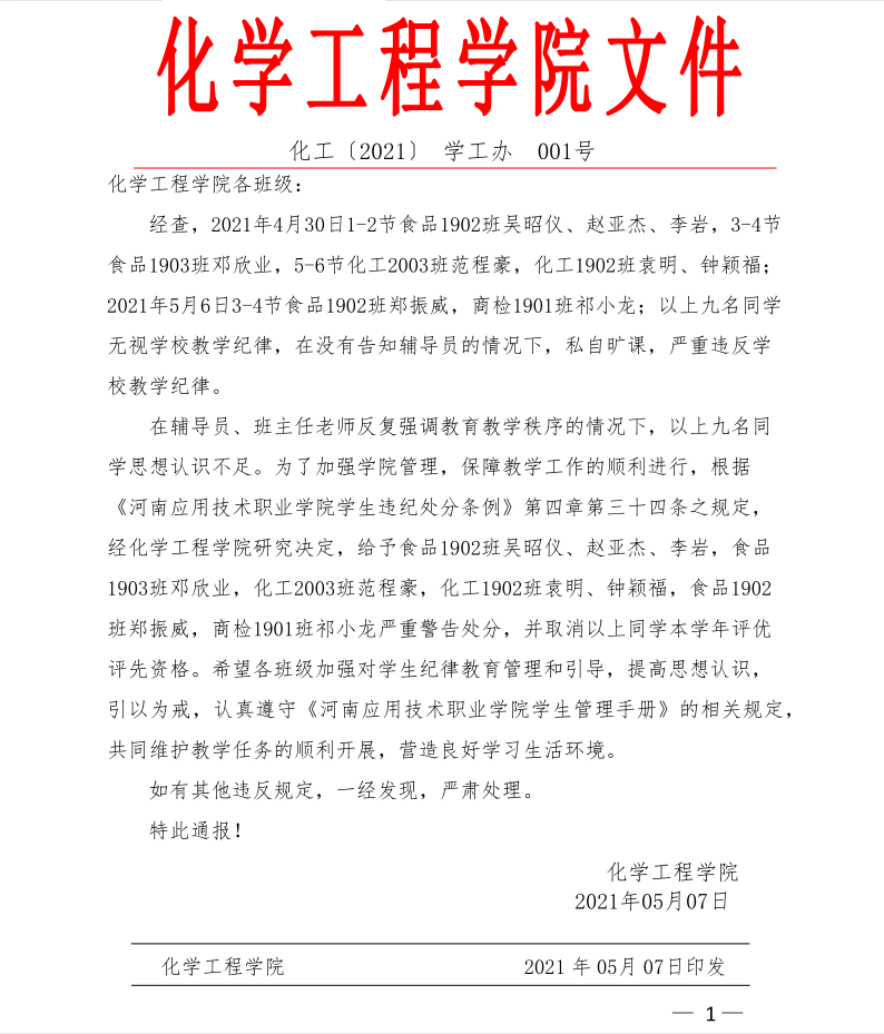 上一条:我院2021年学生资助诚信月活动圆满落幕 下一条:化学工程学院志愿者助力2021单招考试顺利举行