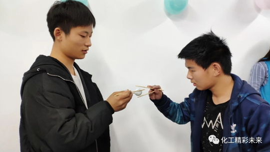 比赛当中还加入了一些娱乐项目。观众当中抽出了三个小组来参加这次的夹乒乓游戏项目,每个小组都展现着非凡的实力。