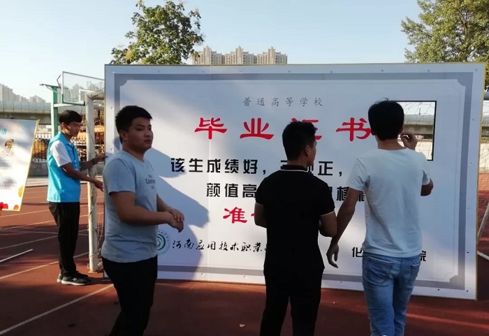 本次毕业季活动,团总支本着“精确、高效、温馨、和谐”的基本原则,设计了会场布置,人员分配,并专程准备了毕业纪念品。会场上,大型毕业证书为毕业生的学习生活画上了圆满的句号,校园音乐激发了毕业生对学院的留恋与不舍,工作人员蓝色制服展示了团总支学生会的良好的服务态度,流畅的工作流程体现了化工学院以生为本的和谐理念。
