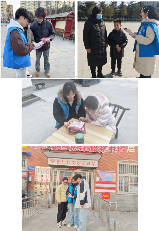 学院精心选拔品学兼优、责任心强的受助学生作为资助政策宣传志愿者,提前开展政策培训,为志愿者讲解国家助学贷款、奖助学金、学费减免、临时困难补助等各类资助政策的申请条件、办理流程及注意事项,确保志愿者懂政策、能讲解、会答疑。寒假期间,志愿者们回到各自家乡,深入社区、乡村、街道,通过发放宣传手册、现场面对面讲解、结合自身受助经历分享等形式,向邻里乡亲、初高中学生及家长普及资助政策,详细解答大家关于政策申请、材料准备等方面的疑问,让群众清晰了解国家教育资助的暖心举措。