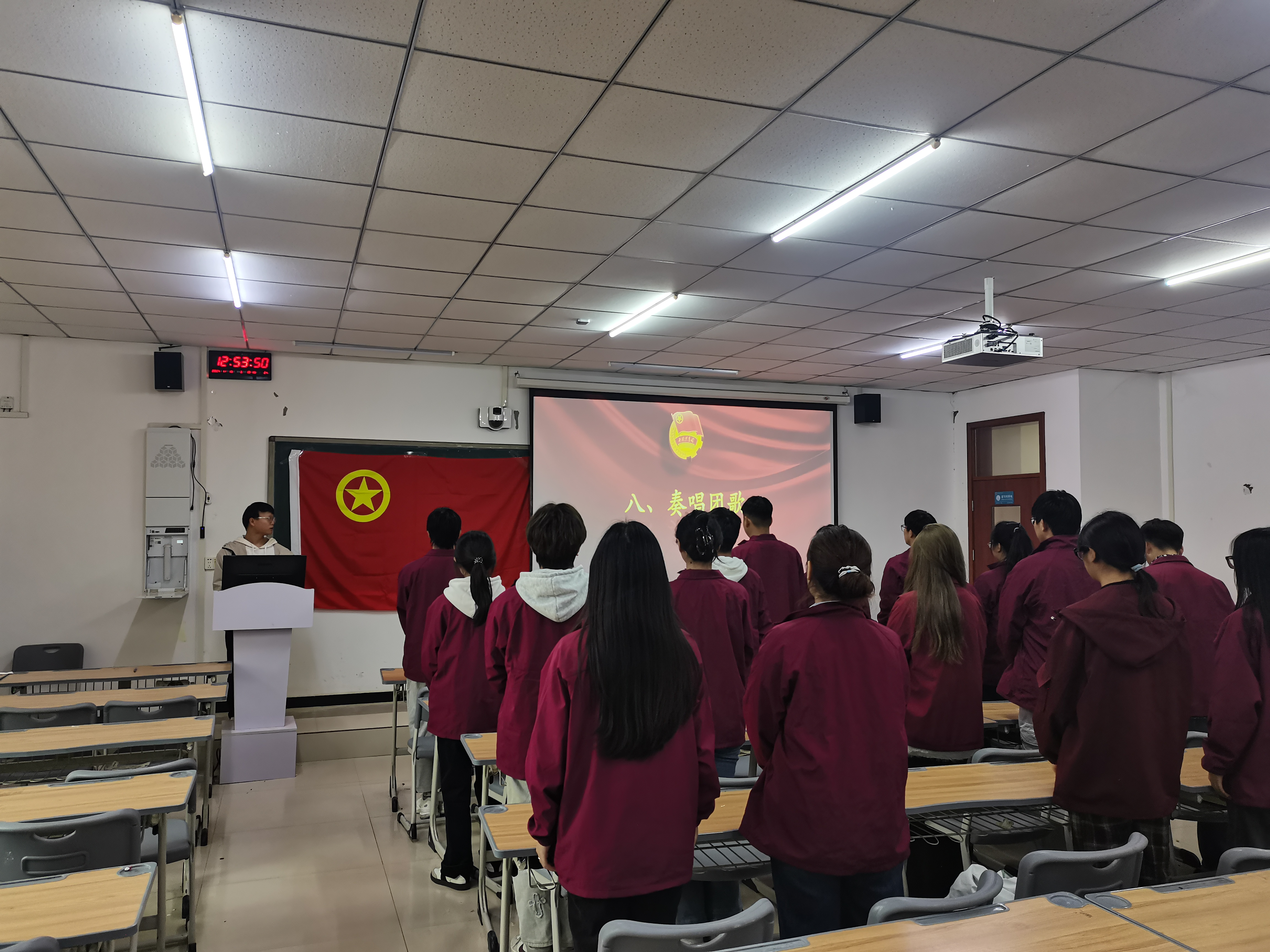 最后,全体成员合唱中国共产主义青年团团歌,在激昂的团歌声中,此次仪式圆满结束。