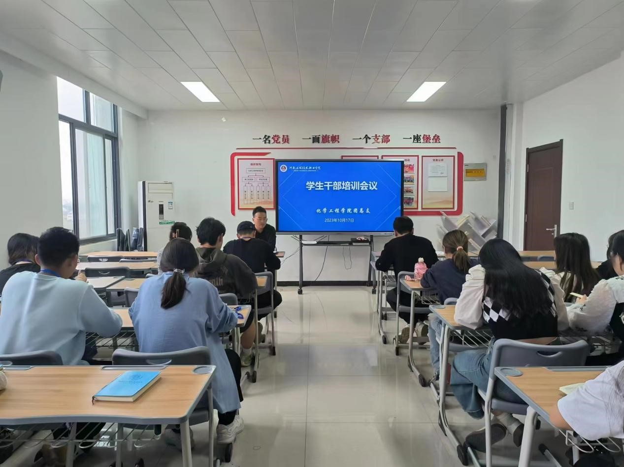 为深入学习贯彻党的二十大精神和习近平总书记关于青年工作的重要论述,加强学生干部队伍作风建设,提高学生干部管理能力和整体素质,2023年10月17日下午,化学工程学院在A512开展学生干部培训,学生会干部参加了会议,会议由学院团总支书记刘海龙主持。