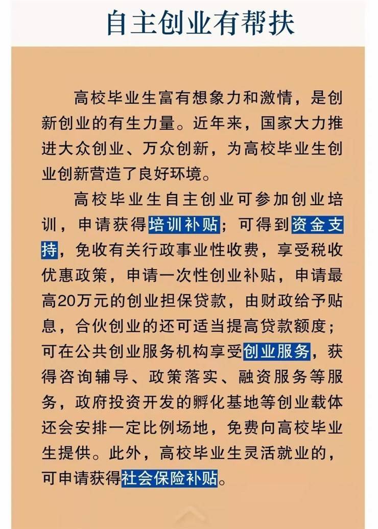 高校毕业生就业创业的政策措施
